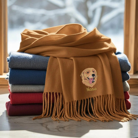 Sciarpa personalizzata con ritratto di cane: elegante sciarpa invernale con il tuo amico a quattro zampe ricamato