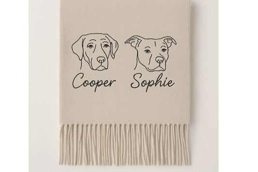 Sciarpa ricamata personalizzata con ritratto di animale domestico: il regalo perfetto per i proprietari di animali domestici