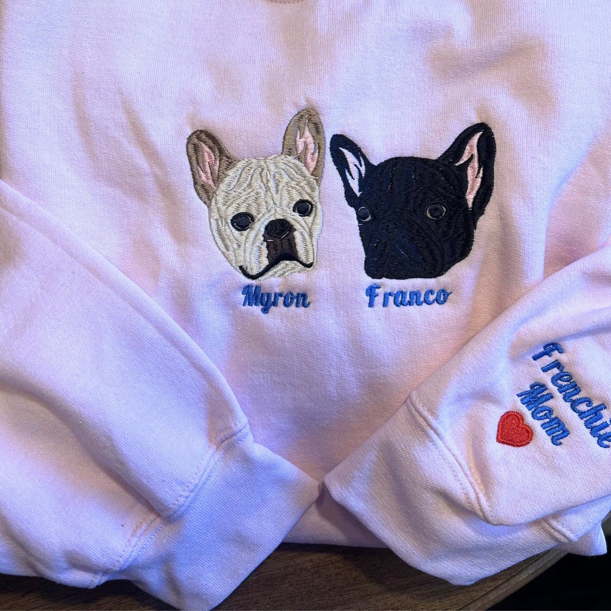Possiamo ricamare l'immagine e il nome del tuo amato animale domestico su una felpa (o una felpa con cappuccio), per mostrare il legame che vi unisce.🐾