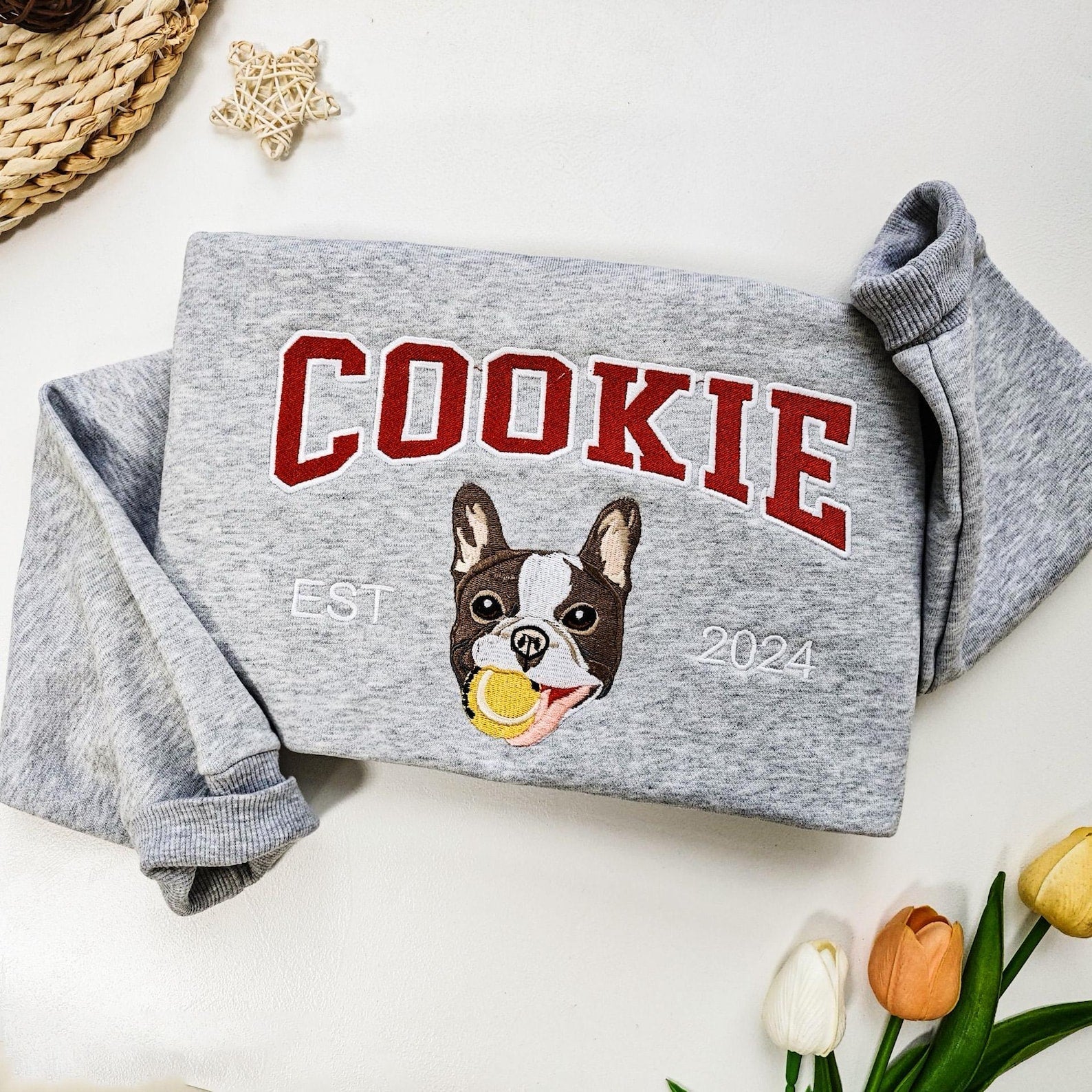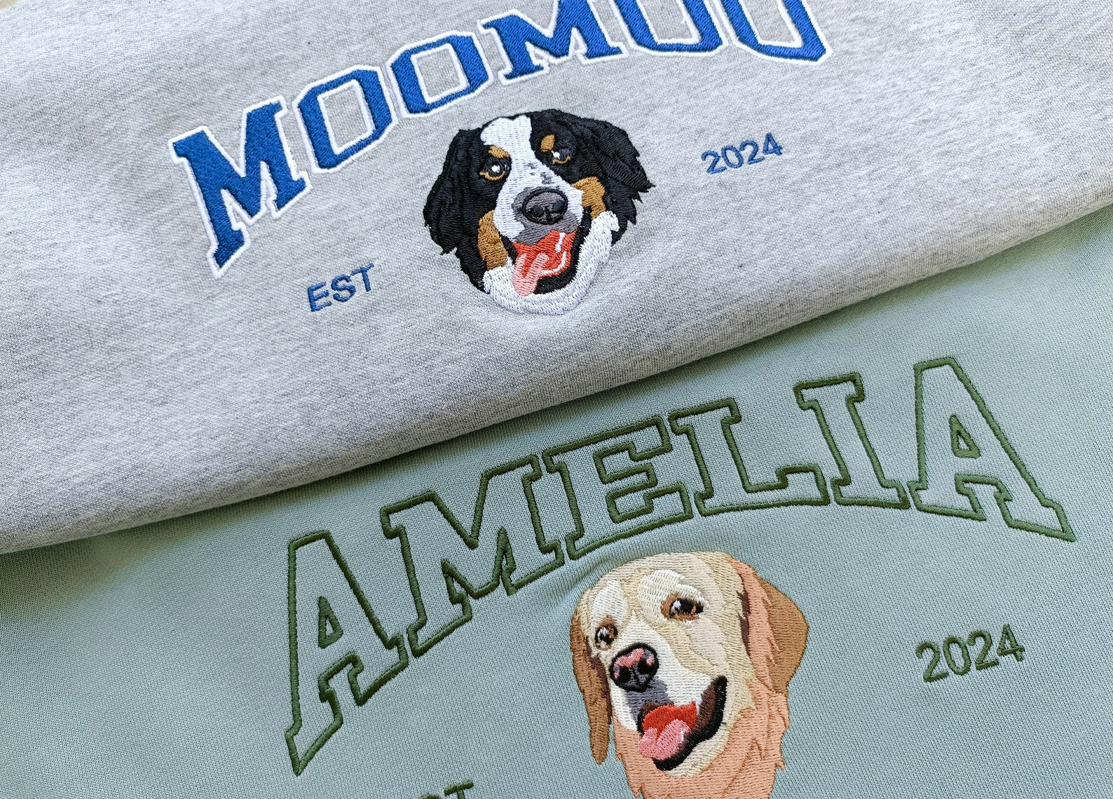 Possiamo ricamare l'immagine e il nome del tuo amato animale domestico su una felpa (o una felpa con cappuccio), per mostrare il legame che vi unisce.🐾