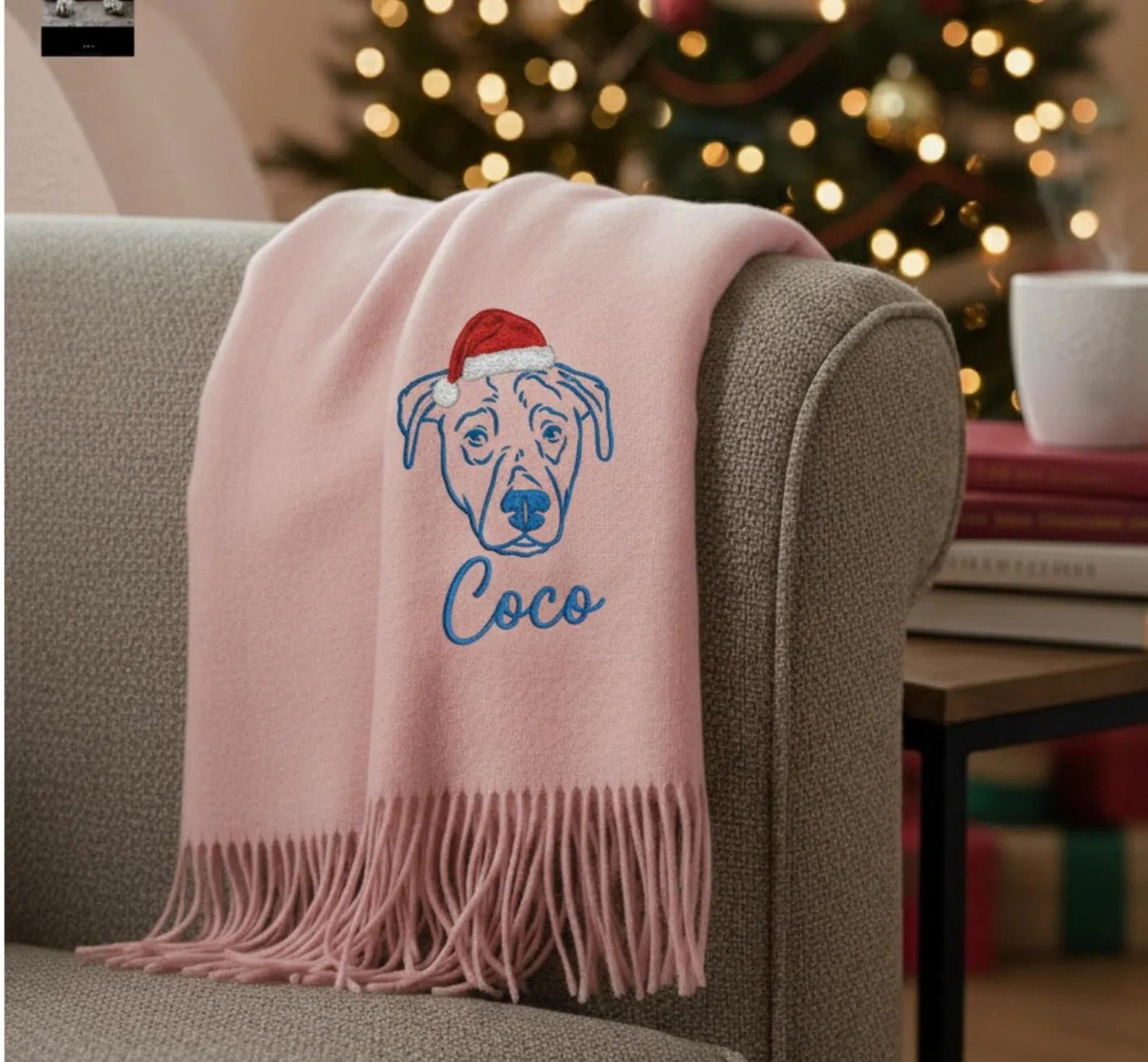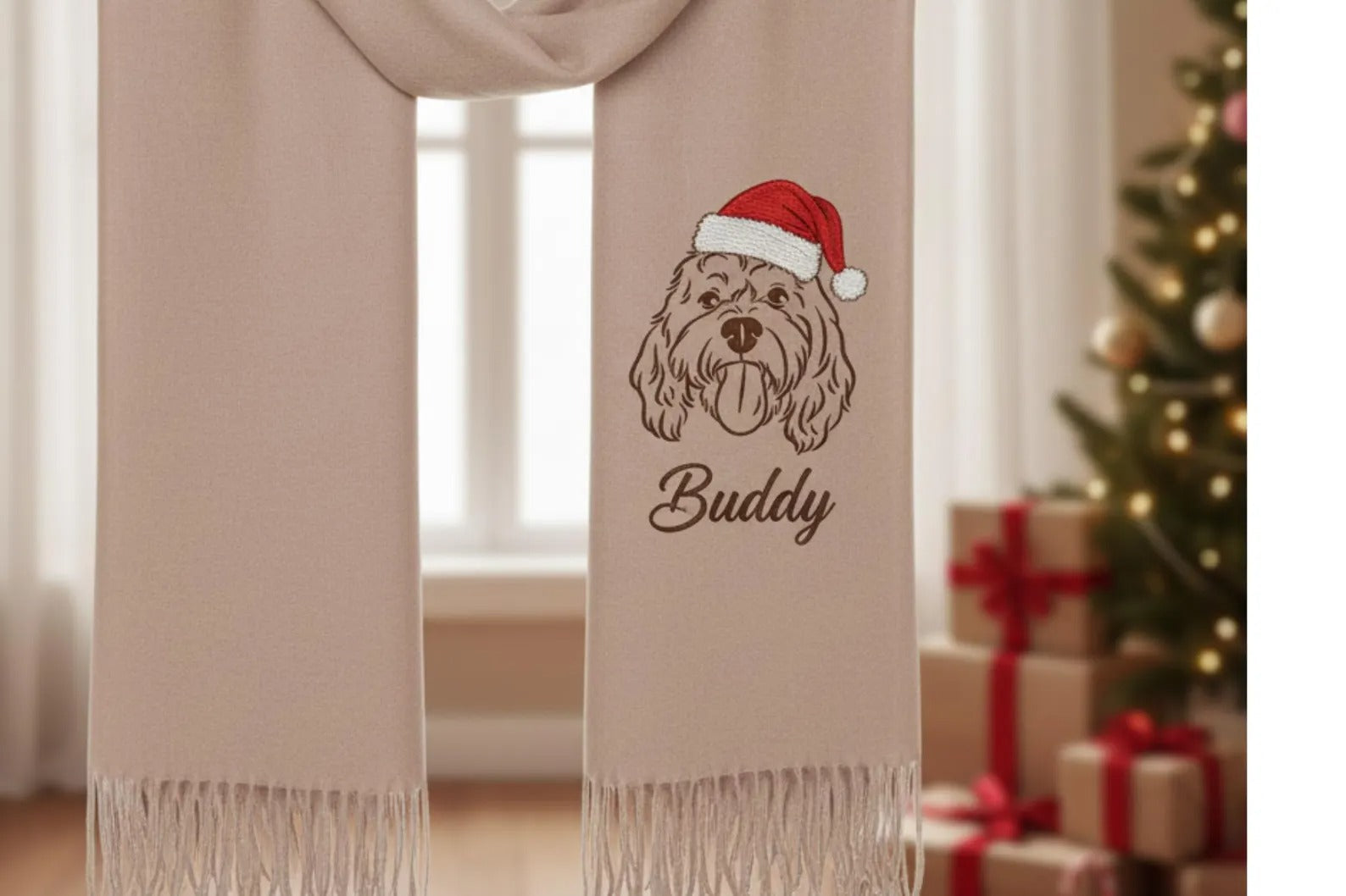 Ritratto di animale domestico su una sciarpa di lana – Sciarpa ricamata individualmente con nome e motivo