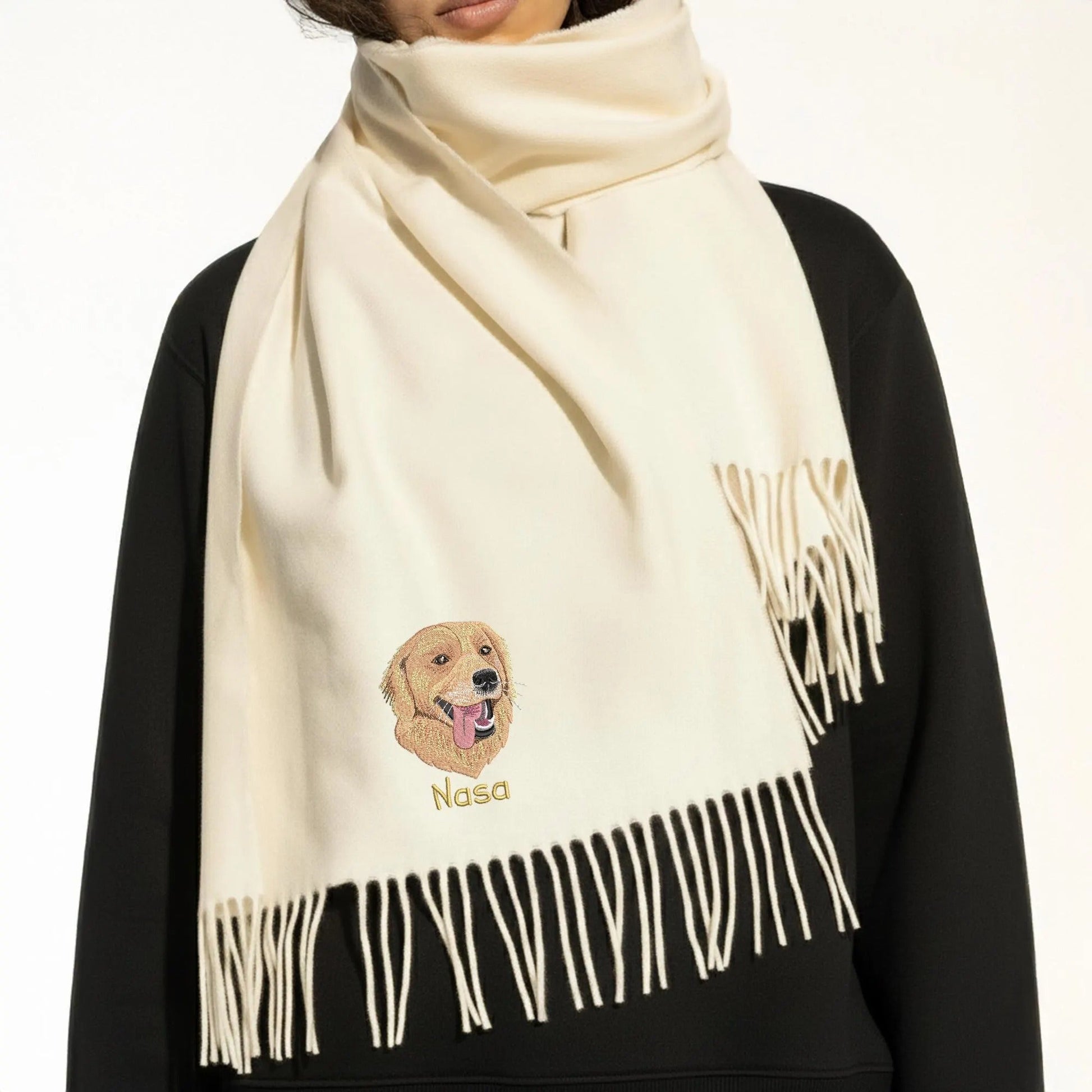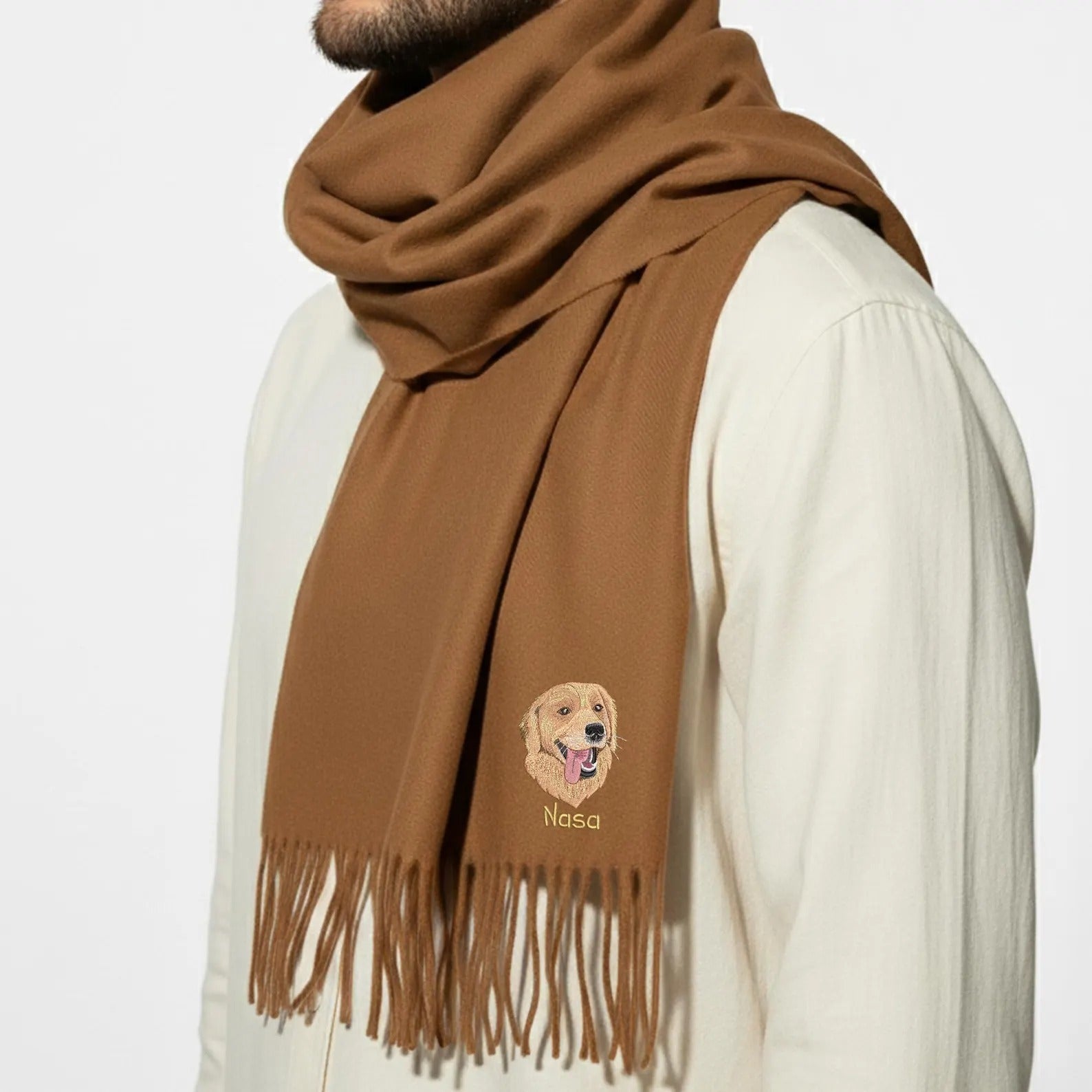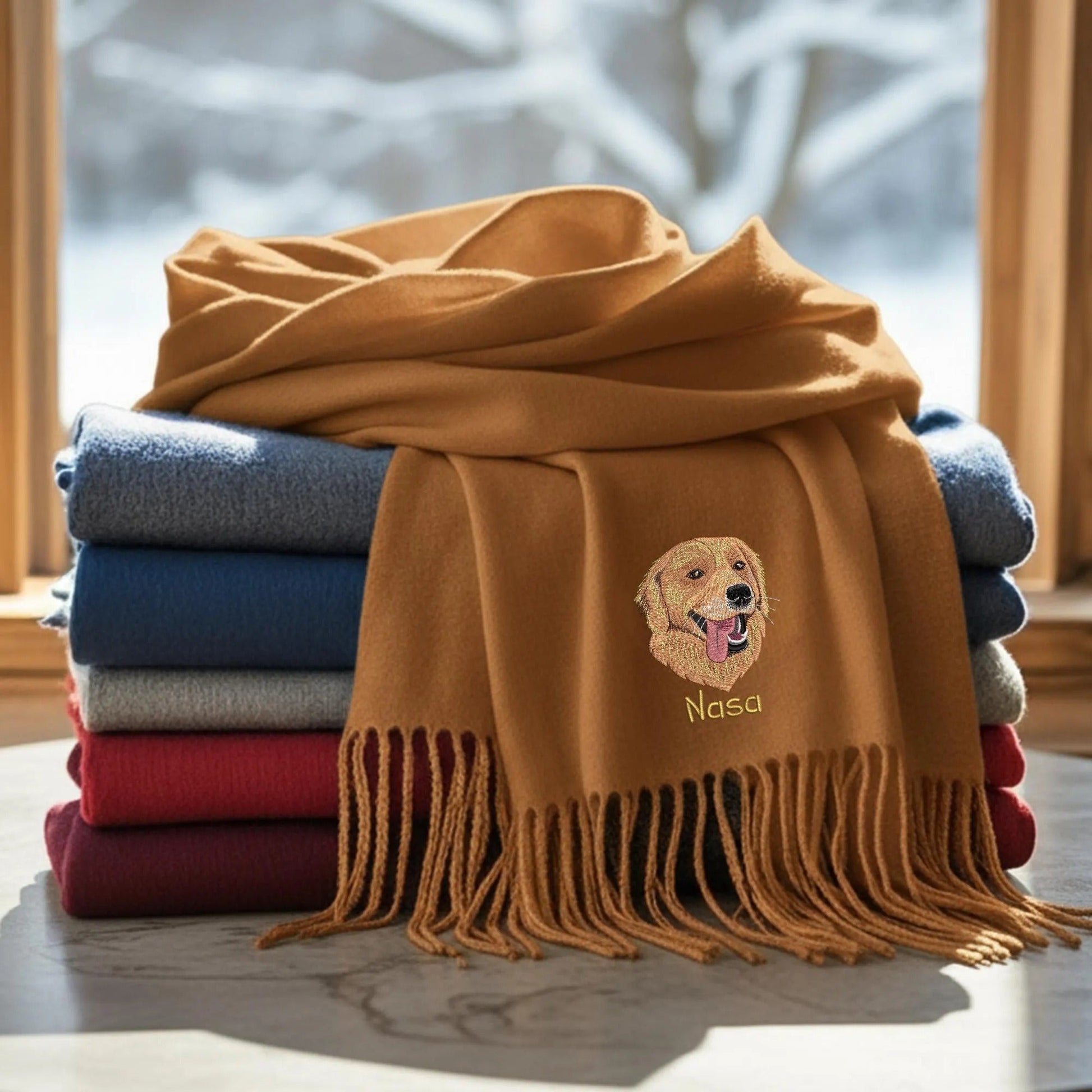 Tieni stretto l'amore del tuo animale domestico con la nostra sciarpa ricamata con il suo ritratto.