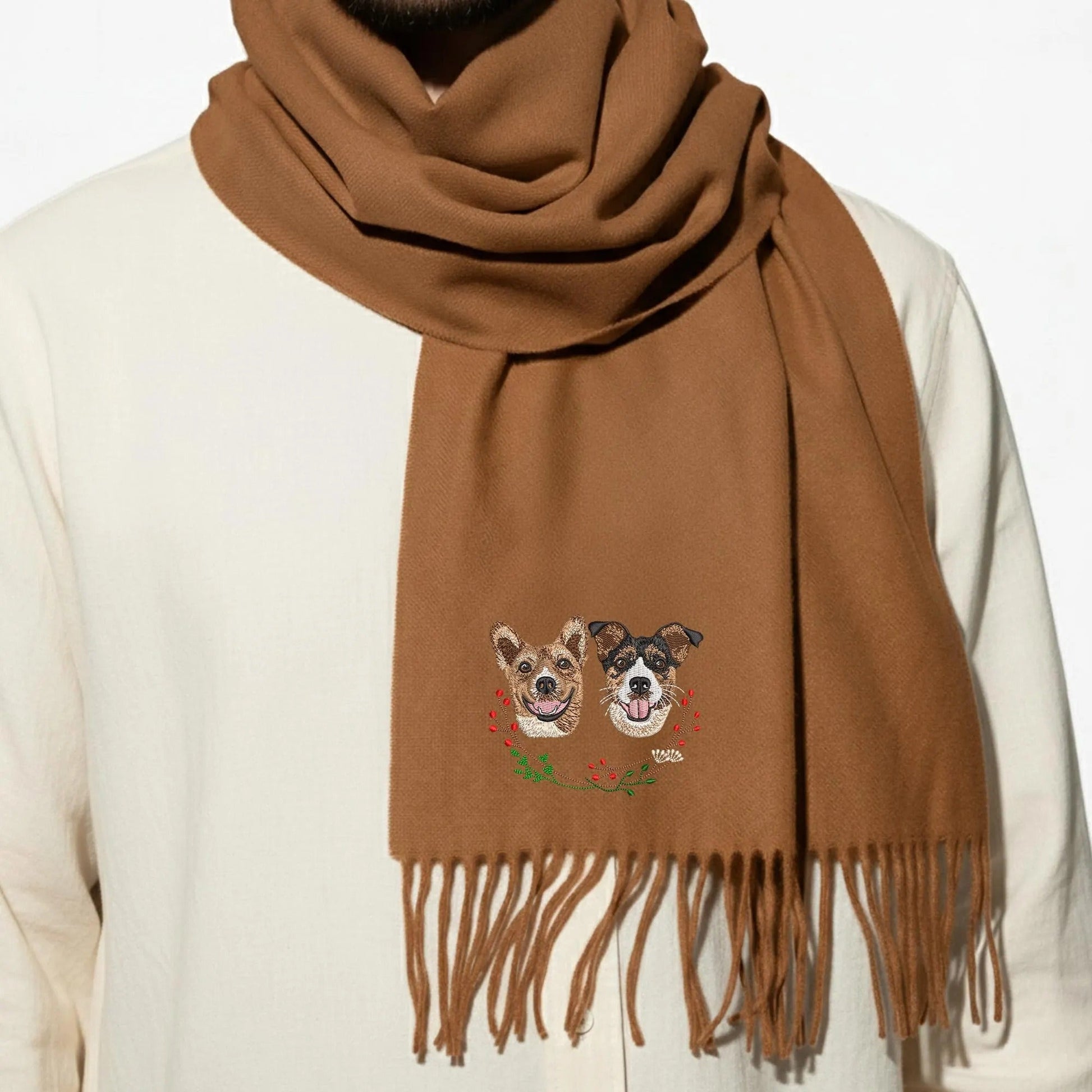 Sciarpa personalizzata con ritratto di cane: elegante sciarpa invernale con il tuo amico a quattro zampe ricamato
